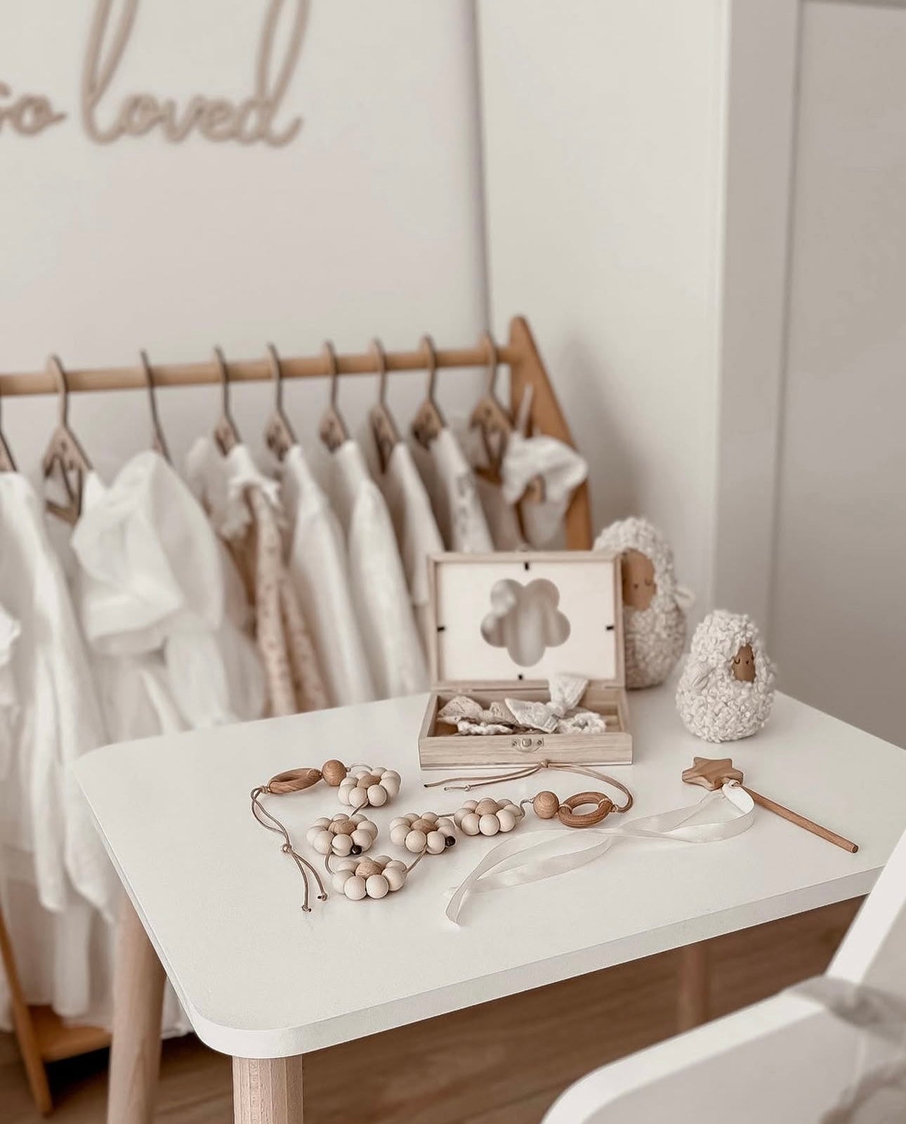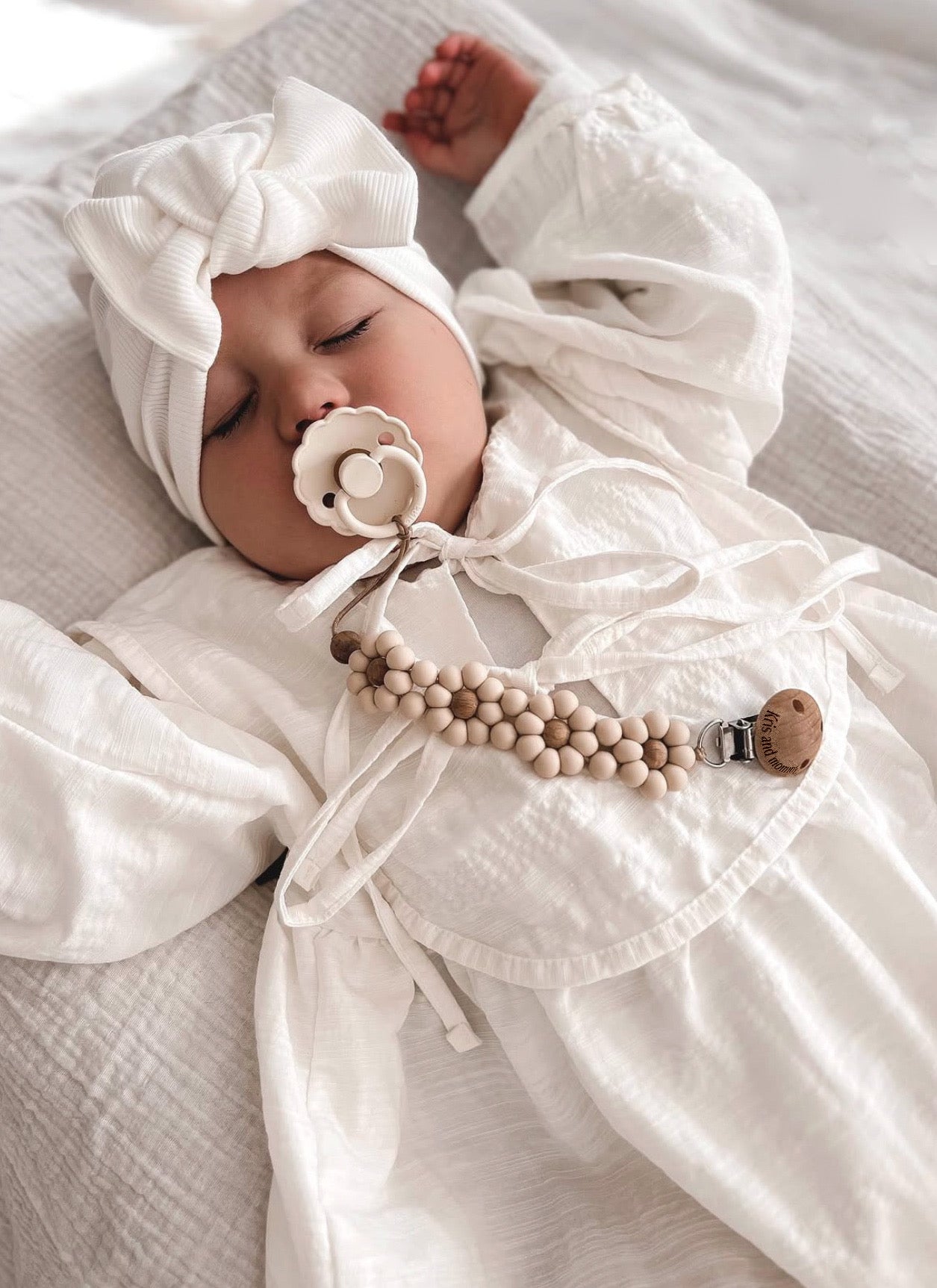 Priponka za dudico in girlanda v enakem stilu se popolno dopolnjujeta – ena za vsakodnevno uporabo, druga za tisti čaroben izgled vozička ali sobice.Ko imaš eno… hitro ugotoviš, da potrebuješ še drugo